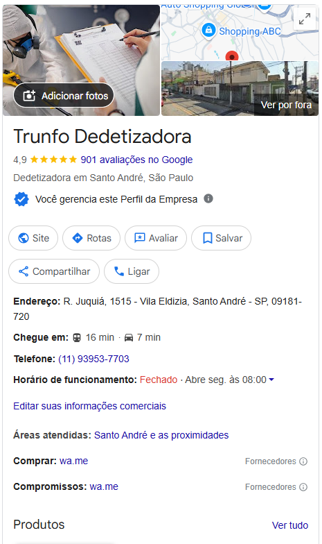 A Dedetizadora com o maior número de avaliações e nota de 4,9 estrelas.